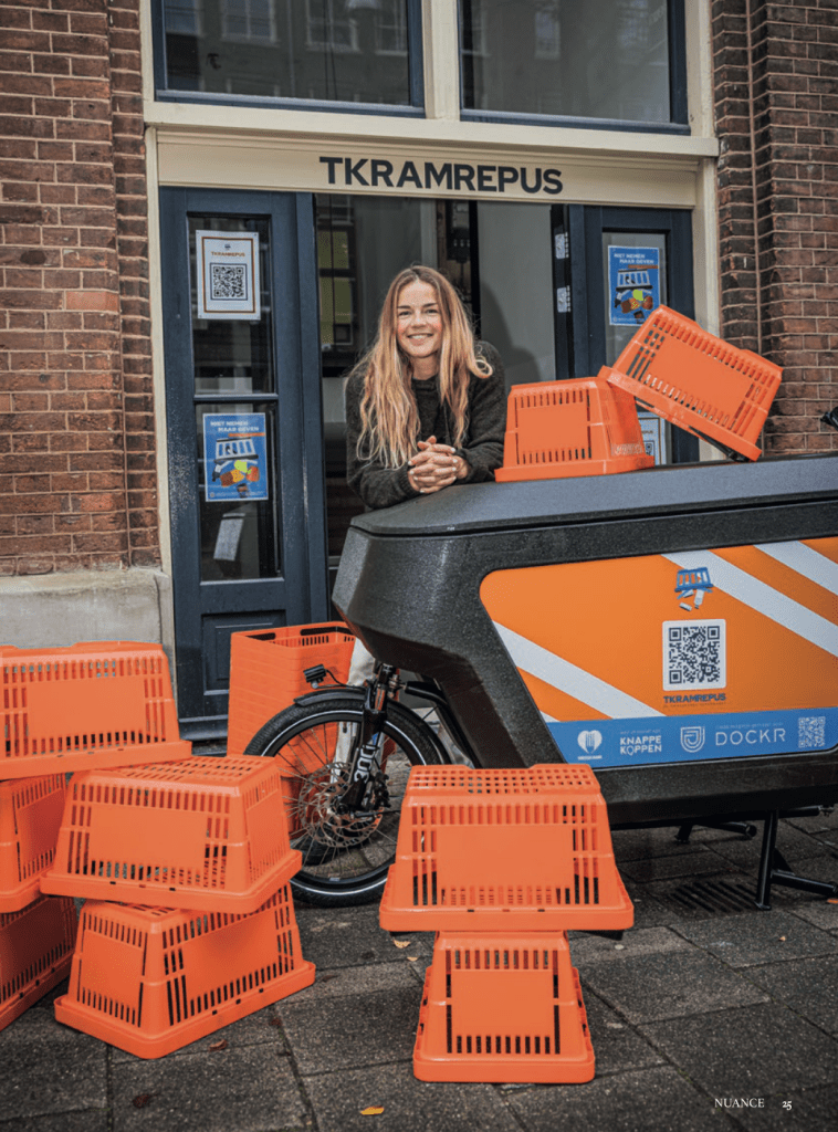 Een omgekeerde supermarkt dus, waar je iets goed doet voor een ander en helpt in de strijd tegen armoede en voedselverspilling. Na een succesvolle pop-up in december 2021 heeft TKRAMREPUS nu een vaste plek in Amsterdam. Moon Grosfeld (28) van KnappeKoppen is er bij betrokken.